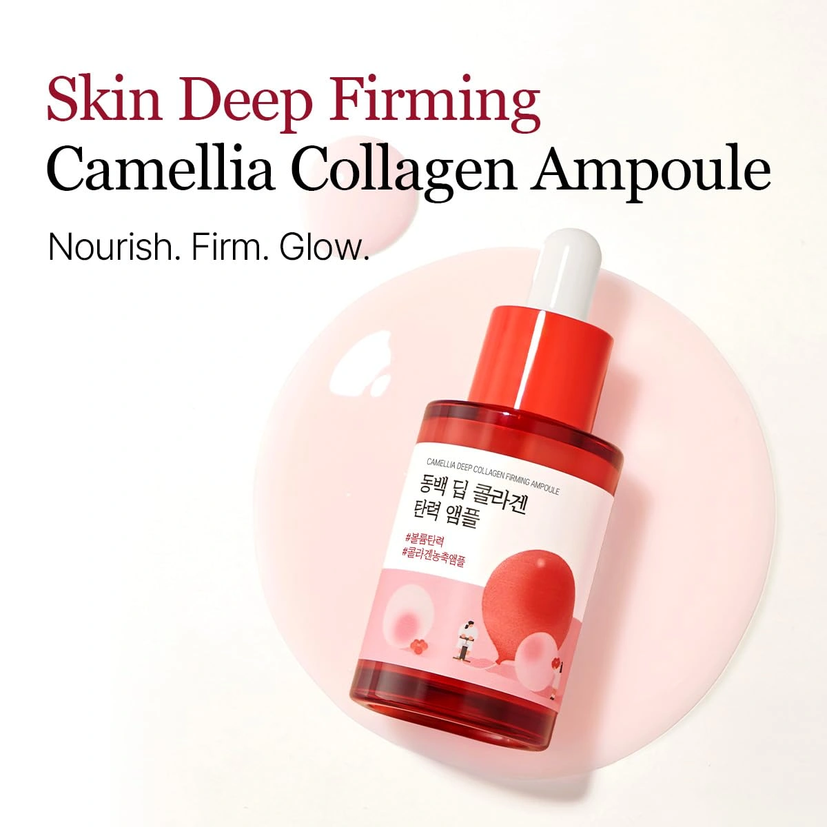 [BOOSTS ELASTICITY WITH JEJU CAMELLIA COLLAGEN EXTRACT] Enriched with the nourishing properties of Jeju Dongbaek flowers, this ampoule enhances skin elasticity, supporting a firm, lifted appearance while revitalizing dull skin